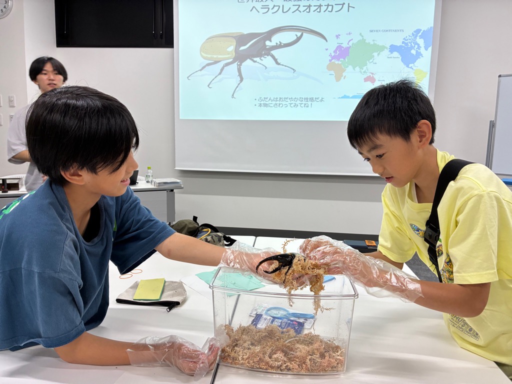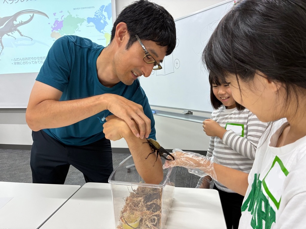 実際にカブトムシやカミキリムシの標本をご持参いただき、観察やをするワークを実施していただきました。珍しいカブトムシに子どもたちが目を輝かせていたのが印象的でした!